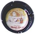 contour noir avec inscription blanche "Henri Abelé", scène centrale représentant couple habillé en tenue de soirée, dans une brasserie début du siècle, cartouche en haut à droite avec l'inscription "Henri Abelé 1757" |