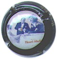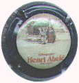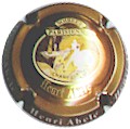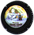 contour noir avec inscription blanche "Henri Abelé", scène centrale représentant champ de vignes devant propriété arborée avec inscription blanche sur le portail "Henri Abelé" |
