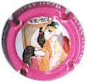 fond bleu, contour bleu contenant 4 fois l'inscription blanche "Henri Abelé", cercle or contenant 2 fois l'inscription bleu foncé Champagne - Henri Abelé - Reims - maison fondée en 1757", fond central bleu avec motif bleu foncé (indéfinissable), 2 dates blanches en haut "1999" et en bas "2000", inscription central bleue foncé "Champagne Henri Abelé - Reims", le verso de la capsule reprend le motif central mais coleurs inversées fond bleu foncé motif bleu clair - échange contre 4 |