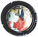contour rose avec inscription blanche "Henri Abelé", scène centrale polychrome représentant un couple masqué enlacé sur un sofa, l'homme renversant la femme pour l'embrasser - échange contre 8 |