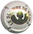 ange de la cathédrale de Reims doré, entouré des inscriptions "Champagne Henri Abelé - Le sourire de Reims" noir sur argent, contour blanc |