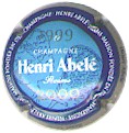 contour orange, contenant 4 fois l'inscription blanche "Henri Abelé", cercle blanc entouré or contenant 2 fois l'inscription bleue "Champagne Henri Abelé - Reims - maison fondée en 1757", fond bleu contenant la date 2000 bleu-vert en fond, 2 dates blanches "1999" en haut et "2000" en bas, inscription centrale bleue foncée "Champagne Henri Abelé - Reims" - échange contre 4 |