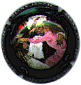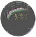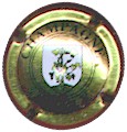 fond noir, cercle or, inscription "Champagne Avizé", double cercle or, blason central or et blanc contenant un cep de vigne or sur fond blanc |