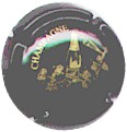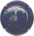 fond bleu, cercle or, inscription or "Champagne Alves", motif central or représentant une bouteille de champagne et 2 flutes pleines |