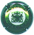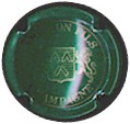 contour vert, inscription "Ayala & C° - chateau d'Ay" verte dans un cercle or, au centre blason or sur fond blanc, entouré de 2 lions (un tête de face, l'autre de profil), et surmonté d'un heaume et de feuillages |