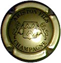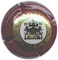 fond vert, cercle or, inscription or "Ariston Fils - Champagne", blason central or contenant 3 chevrons or sur fond strié or et vert, entouré de 2 lions |