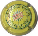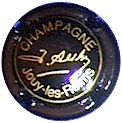 fond noir, cercle or, inscription or "Champagne - Jouy-les-Reims", signature centrale "J. Aubry" |