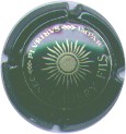 fond vert, cercle vert bordé or contenant inscription or "Champagne Ariston", rose des vents centrale or |