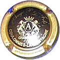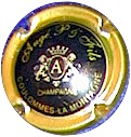 contour or, fond noir avec inscription or écriture épaisse "Augé Père & Fils - Champagne - Coulommes-la-Montagne" et petit blason central or avec un "A" au milieu, surmonté d'une couronne et entouré de 2 lions |