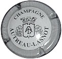 contour strié blanc et noir, fond noir, inscription or "Champagne Autreau-Lasnot", blason central or contenant les initiales enlacées "A" et "L", entouré de grappes de raisins avec feuille et surmonté d'une couronne |
