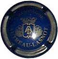 contour vert, inscription "Ayala - chateau d'Ay" verte dans un cercle or, au centre blason or sur fond blanc, entouré de 2 lions (un tête de face, l'autre de profil), et surmonté d'un heaume et de feuillages |