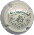 fond crème, cercle noir en forme de coupe sans pied, inscription noire "Aÿ-Champagne - Association coopérative - de viticulteurs", au cntre 3 *initiales enlacées noire striées "ACV", entouré de grappes de vignes" |