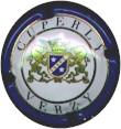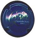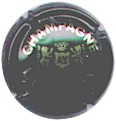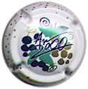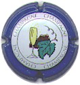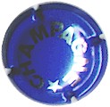 fond bleu foncé constellé de bulles or, de feuilles de vignes or et de grappes de raisins or, un immense "C" bleu clair bordé or recouvrant la plaque |