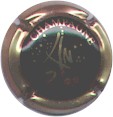fond or, cercle noir, inscription noire "Champagne J. Copin - Verneuil", blason central noir contenant les initiales "JC" or sur fond noir, entouré de fioriture et surmonté d'une couronne |