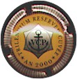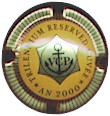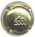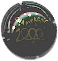 contour or rosé strié noir, centre orange inscription or rosé "Trilennium reserved cuvee" et "An 2000" séparées par des étoiles or rosé, grande étoile centrale or rosé à 6 branches, contenant un cercle noir avec une ancre marine noire traversée par les initiales "VCP" |