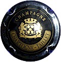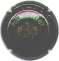 fond noir, cercle or, inscription or "Pierre Callot - Avize", blason central armoiries de Champagne, entouré de 2 feuilles de vignes, et surmonté d'un heaume |