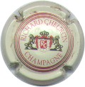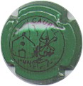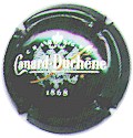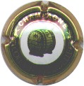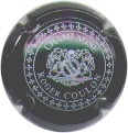 contour vert foncé strié or, fond vert foncé, inscription or "Champagne René Coutier - Ambonnay", 4 cercles or, au milieu, initiales cursives enlacées or "RC" |