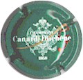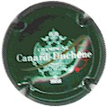 Fond vert foncé, inscription blanche "Champagne Canard-Duchêne 1868" avec "Canard-Duchêne" gras et grand 1868, petit sabre or sur blason argent aigle à 2 têtes surmontés d'une couronne |