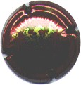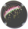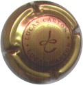 fond or, cercle marron, inscription marron "Lucas Carton" répétée 2 foiscercle central or pâle contenant une comète et surchargé par la signature marron "LC" |