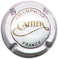 fond blanc, cercle or pâle et inscription or pâle et grasse "Champagne - France" avec au centre une signature or pâle et grasse "Cattier" |