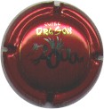 fond rouge, cercle or coupé en bas par l'inscription or "Champagne", inscription or "Cuvée Dragon - Cattier", motif central argent représentant un dragon formant un 2000 |
