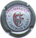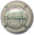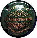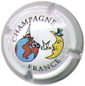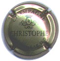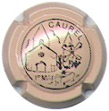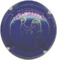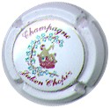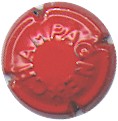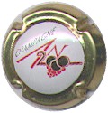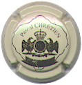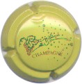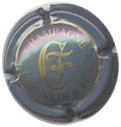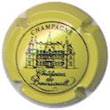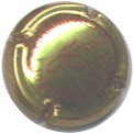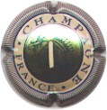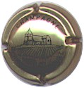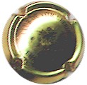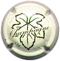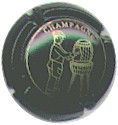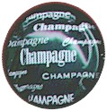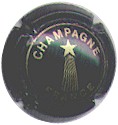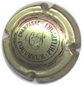 fond or, cercle ondulé noir, cercle noir, inscription noire "Champagne - Couvreur-Philippart", initiales cursives enlacées centrales noires "CP" |