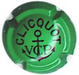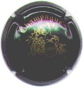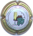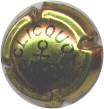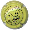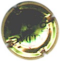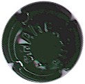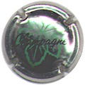 fond or, cercle vert composé d'enluminures à base de feuilles de vignes et comportant en haut un cartouche contenant les initiales enlacées "P" et "C", inscription centrale noire "Champagne Paul Clouet à Bouzy" |