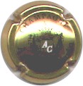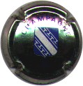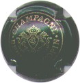 fond vert foncé, cercle or, inscription or "Champagne - Bernard Copin", ecusson central or contenant les lettres enlacées "BC", entouré de 2 lions et surmonté d'une couronne |