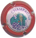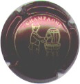 fond or, cercle noir, inscription noire "Club des viticulteurs Champenois", motif central noir représentant 2 vendangeurs transportant un panier de raisin entourés de 2 fleurs de lys |