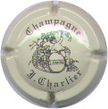 fond crème, inscription noire "Champagne Coutant-Chanoir", blason central noir contenant les initiales "CC" séparées par une barre, entouré de 2 lions, surmonté d'une couronne et souligné par des enluminures |