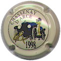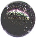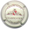contour blanc cassé, cercle or, fond noir, inscription blanche "Champagne Claude Carré - Trépail", blason central or contenant un "C" blanc, surmonté d'une couronne et entouré de grappes de raisin avec feuille de vigne |