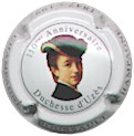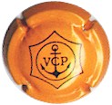 contour or strié noir, centre orange inscription or "Trilennium reserved cuvee" et "An 2000" séparées par des étoiles or, grande étoile centrale or à 6 branches, contenant un cercle noir avec une ancre marine noire traversée par les initiales "VCP" |