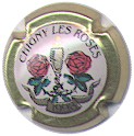 fond or, inscription verte "Champagne Cattier", motif central tige de rose avec feuilles vertes et 1 fleur éclose et 2 en bouton roses |
