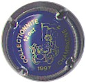 contour bleu strié or, fond bleu, inscription or "Collectionnite 12 oct 1997 - Champagne", motif central or représentant une vieille voiture |