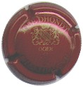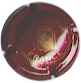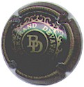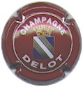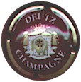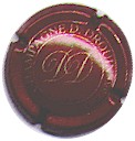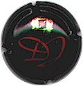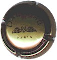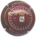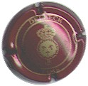 fond bordeaux, inscription or "Champagne France", blason or de champagne avec "D" et "L" de chaque côté, cercle or bordé de points |