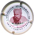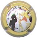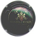 fond noir, cercle or, inscription or "Champagne (dans un cartouche) - Danteny-Mangin - Mareuil-sur-Ay", blason central or et rouge contenant les initiales enlacées "DM" or sur rouge, entouré de 2 lions et surmonté d'une couronne |