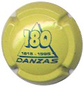 fond jaune, triangle central bleu souligné par l'inscription bleue "Danzas", contenant les dates "1915-1995" et traversé par un grand "180" bleu ombré |