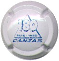 fond blanc, triangle central bleu souligné par l'inscription bleue "Danzas", contenant les dates "1915-1995" et traversé par un grand "180" bleu ombré |