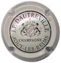 fond crème, cercle noir, inscription noire "J.F. Dautreville - Champagne - Jouy-les-Reims", blason central noire reprenant les armes de Champagne, entouré de 2 lions et surmonté d'une courone |