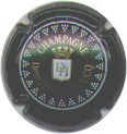 fond vert foncé, inscription or "Champagne France", blason or de champagne avec "D" et "L" de chaque côté, cercle or bordé de points - sur champagne Denis Père & Fils brut (sélection Gault&Millau) |