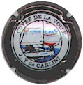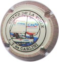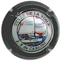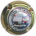contour or, cercle blanc entouré noir contenant l'inscription noire "Cuvée de la voile - J.-Y. de Carlini", motif central multicolore représentant un voilier des Assurances "Athéna - GPA" avec logo des 2 filiales sur les voiles |