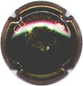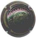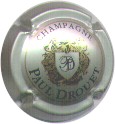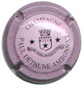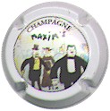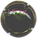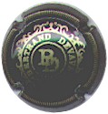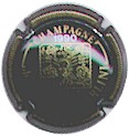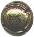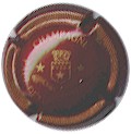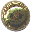 fond marron, cercle or, inscription or "Champagne Paul Dangin", blason central or tour crénelée, surmonté d'une couronne et entouré de 2 grappes de raisins |