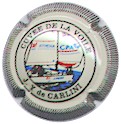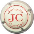 cuvée Jacques Cartier - fond crème, cercle rouge, inscription rouge "Jacques cartier", 2 grosses lettres rouges centrales "JC" |