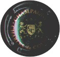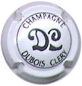 fond blanc, cercle noir, inscription noire "Champagne Dubois-Cléry", initiales noires centrales enlacées "DC" |
