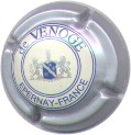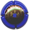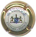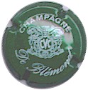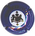 fond vert, inscription blanche "Champagne De Blémond", blason central blanc contenant les lettres "CVC", entouré de 2 lions, surmonté d'un heaume couronné |