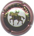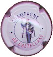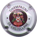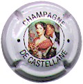 contour rosé, cercle fond noir entouré or avec inscription or "Vicomte de Castellane - Epernay", cavalier central or sur fond blanc tenant un écusson représentant une tour crénelée |