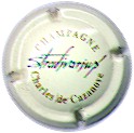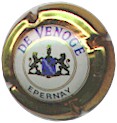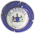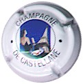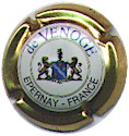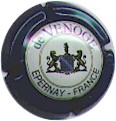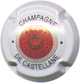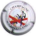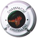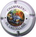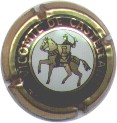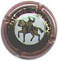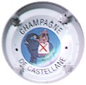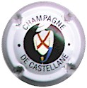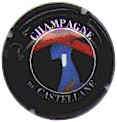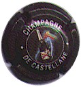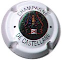 contour crème, cercle fond noir entouré or avec inscription or "Vicomte de Castellane - Epernay", cavalier central or sur fond blanc tenant un écusson représentant une tour crénelée |