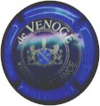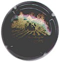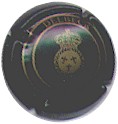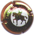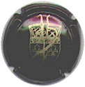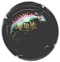 cuvée Bugatti 1985 - contour vert foncé, cercle fond noir entouré or avec inscription or "Vicomte de Castellane - Epernay", cavalier central or sur fond bleuté tenant un écusson représentant une tour crénelée |