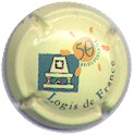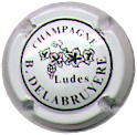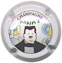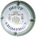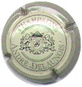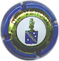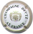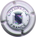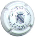 fond blanc, inscription bleue plus fine et plus large "Champagne France", blason bleu de champagne avec "D" et "L" de chaque côté, cercle bleu bordé de points |