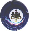 fond bleu foncé, cercle or bordé de points, inscription jaune "Champagne Duval-Leroy", blason central or avec un coeur rouge transpercé d'une flèche, entouré de feuilles de vigne, surmonté d'un heaume, et sous-titré "1859" |